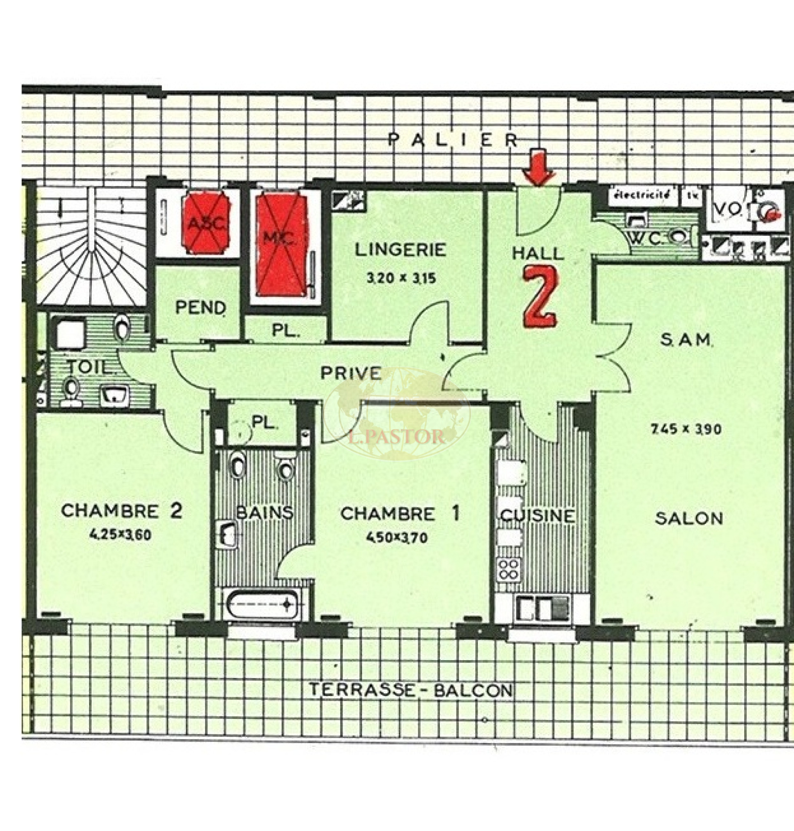 L'appartement se compose d'un beau hall d'entrée avec un toilette invités, d'un salon et de sa cuisine séparée. Une lingerie se situe dans la partie nuit avec des placards et une salle de douche sans fenêtre. Les 2 chambres et la 2ème salle de douche sont vue mer ainsi que la terrasse. L’appartement dispose d’une cave. Pas de rétrocession.