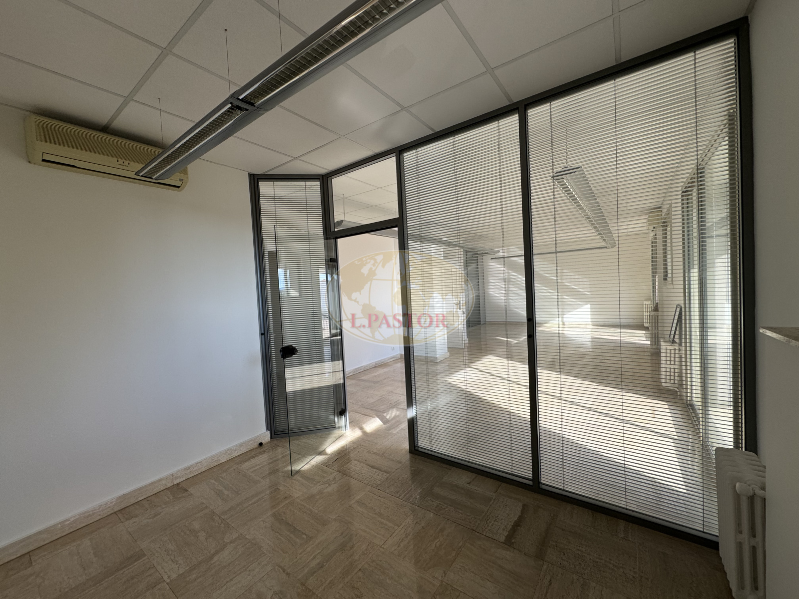 Ce bureau, refait à neuf et lumineux , au premier étage se développe sur une surface de 158m² dont 28 de loggia et se compose comme suit: